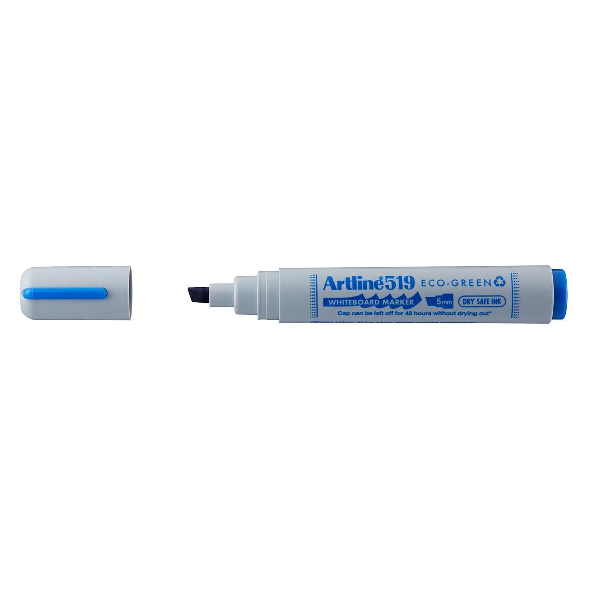 Whiteboardpenna Artline 519 ECO-GREEN Sneddskuren Svart. Whiteboard-penna med skuren spets och 2-5 mm skrivbredd. Plasthylsa i återvunnen plast, alkoholbaserat pigmenttusch utan Xylen, Dry Safe-funktion vilket betyder att den vara utan huv i 48 timmar.Til