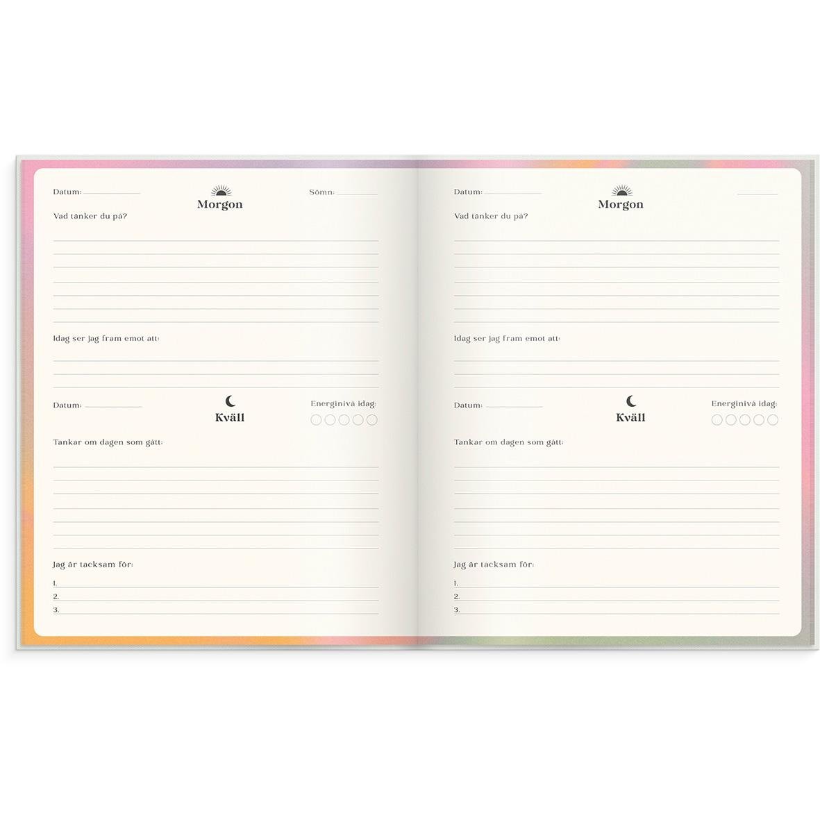 Dagbok Burde Morgon- och kvällsdagbok 170x210mm. Allt fler studier visar på stora fördelar med att skriva dagbok. Det är en enkel och kraftfull metod för att ta kontroll över ditt välmående. Allt du behöver göra är att lägga fem minuter av din tid varje m