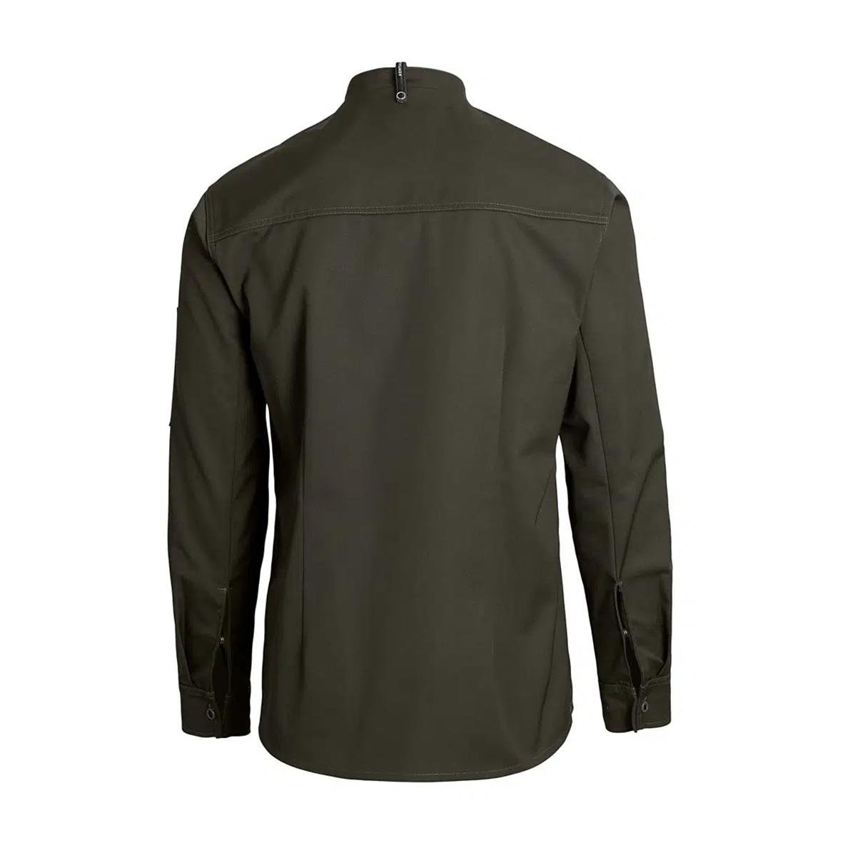 Kock-/Servicejacka Kentaur 23515 Unisex Cypres Olive 5XL. - Our Choice - Återvunnen polyester från PET-flaskor - Modern fit - optimal passform - Hank i nacken för bröstförkläde - Invändig rem i Pull-Up cuff som gör ärmlängden justerbar - Ärmar som inte l