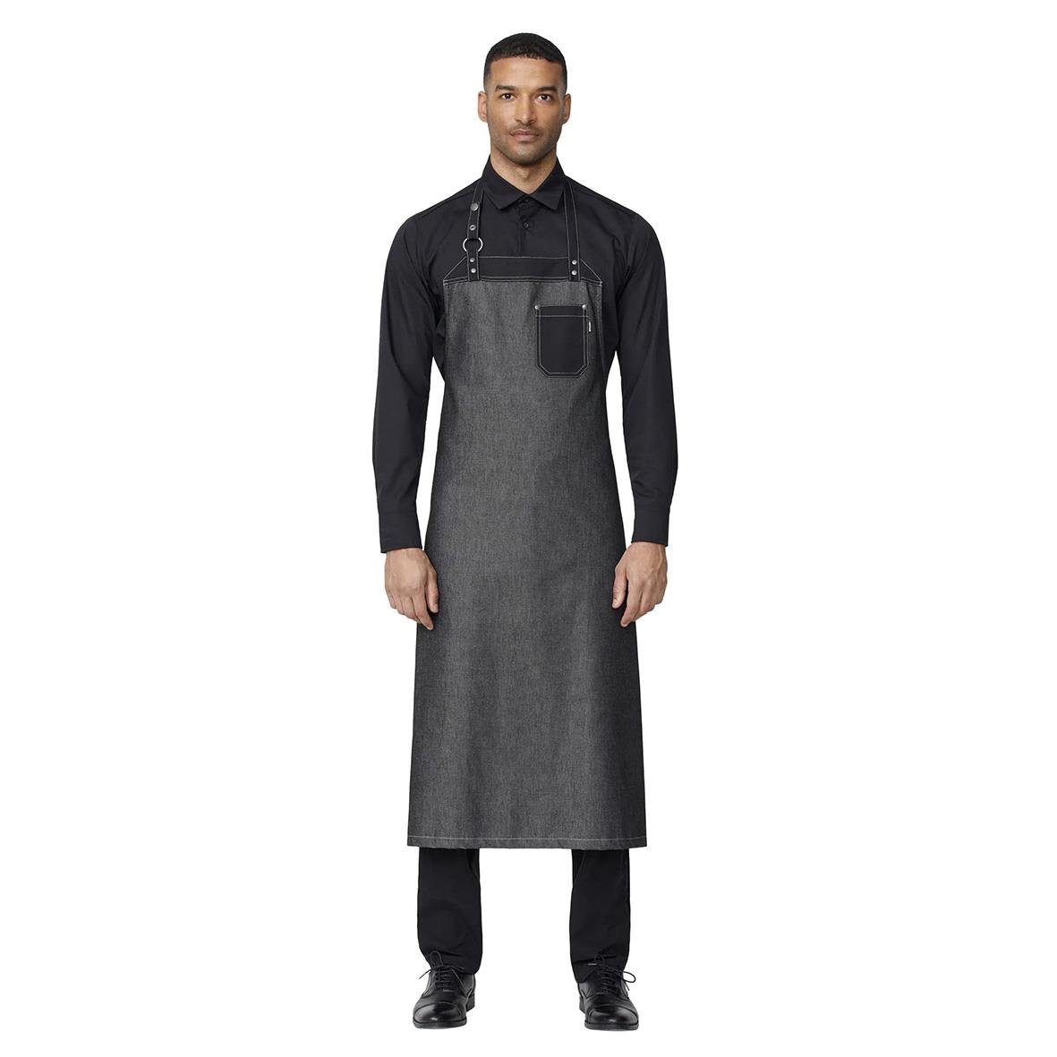 Bröstlappsförkläde Kentaur 30391 RAW 2-i-1 Rock Cross. - Råa detaljer som metallring och nitar - Remmar och fickor i annat tyg - Justerbart nackband - 1 bröstficka - Steamerhenk - B: 90 cm x H: 108 cm 360 g/m2