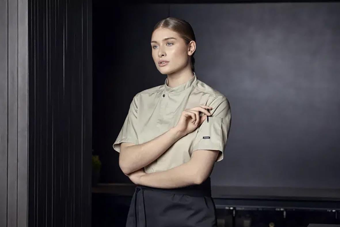 Kock -/Servicejacka Kentaur 23516 Sand 4XL. - Our Choice - Återvunnen polyester från PET-flaskor - Modern fit - optimal passform - Hank i nacken för bröstförkläde - Tvådelad pennficka på vänster ärm - Slits i sidan 65/35% rPES/CO - 175 g/m2