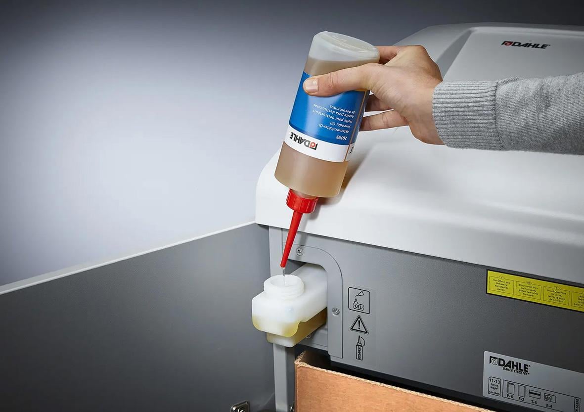 Dokumentförstörare Dahle Team 706 P7. Dokumentförstörare för professionellt bruk • Dörren öppnas brett för enkel tömning av avfallsbehållaren • Intuitiv och användarvänlig kontrollpanel med belysning och ljudsignaler • Automatisk avstängning efter 30 minu