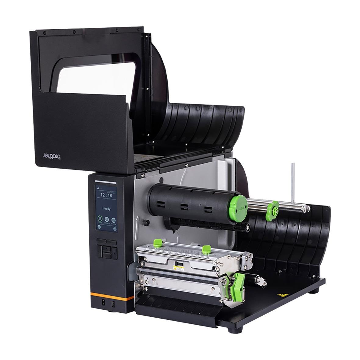 6-tums industriell etikettskrivare för termisk överföring med pekskärm i färg och utskriftshastigheter på upp till 10 ips. Termisk överföring och direkt termisk tryckteknik, skriver ut med upp till 300 dpi utskriftsupplösning med en utskriftshastighet upp