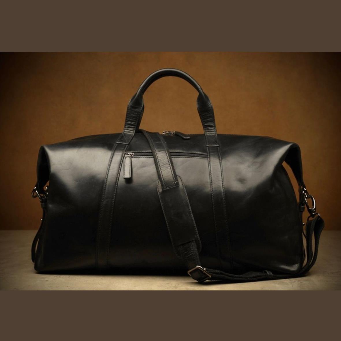Weekendbag Pisa Svart Läder, Handtag & Axelrem