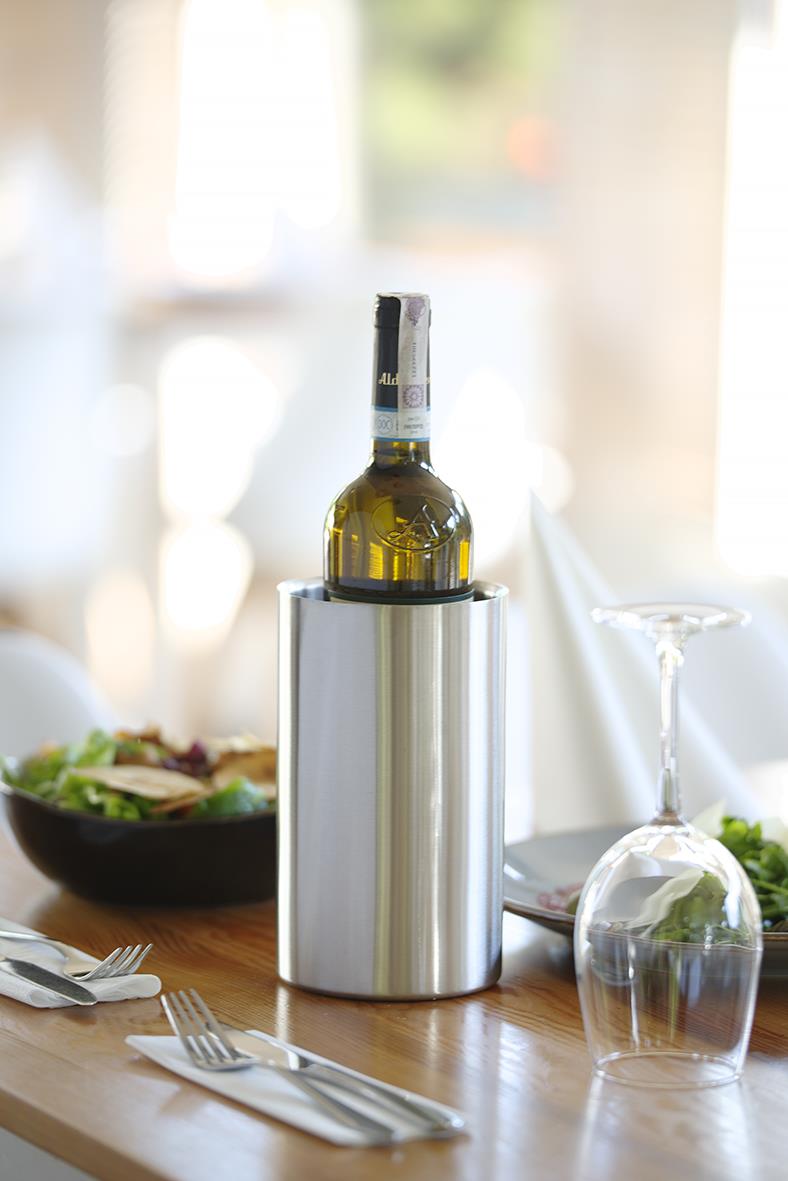 Vinkylare Hendi Ø120 mm. Dubbelväggigt rostfritt stål. Avsedd att användas utan isbitar. Invändig diameter: 105 mm. Mått: Ø120 × (H)180 mm.