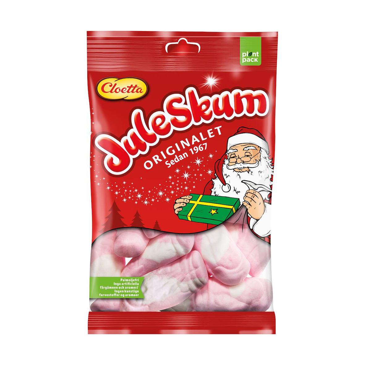 Godis Cloetta Juleskum 100 g. Juleskum Original – En älskad julklassiker. Det älskade originalet Juleskum är ett måste varje jul. Påsen är fylld med rosa, fluffiga tomtar med vitt skägg – oemotståndligt goda och lika populära år efter år. Det är inte kons