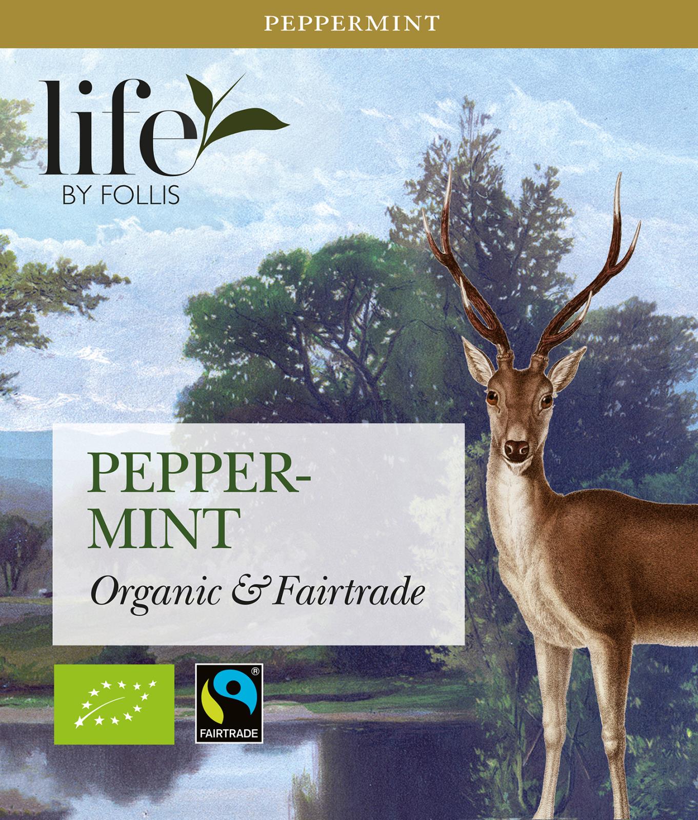 Ekologiskt örtte gjort på ren pepparmynta. Fräsch avrundning på en god måltid. Låt det dra 4-5 minuter så att alla smaker kommer fram. Koffeinfritt och Fairtrade.
