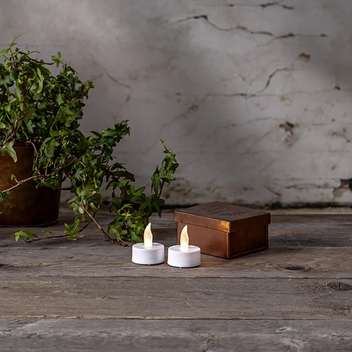 Paulo värmeljus lyser med varmvitt sken och har en inbyggd timer som gör att ljuset lyser i 6 timmar och sedan slocknar, för att tända igen så ändra läget till off och sedan on igen. OBS, ta bort transportsäkringen från batteriluckan innan du tänder ljuse