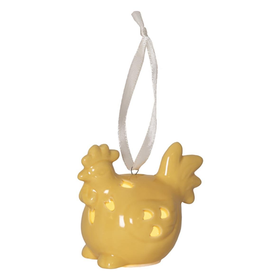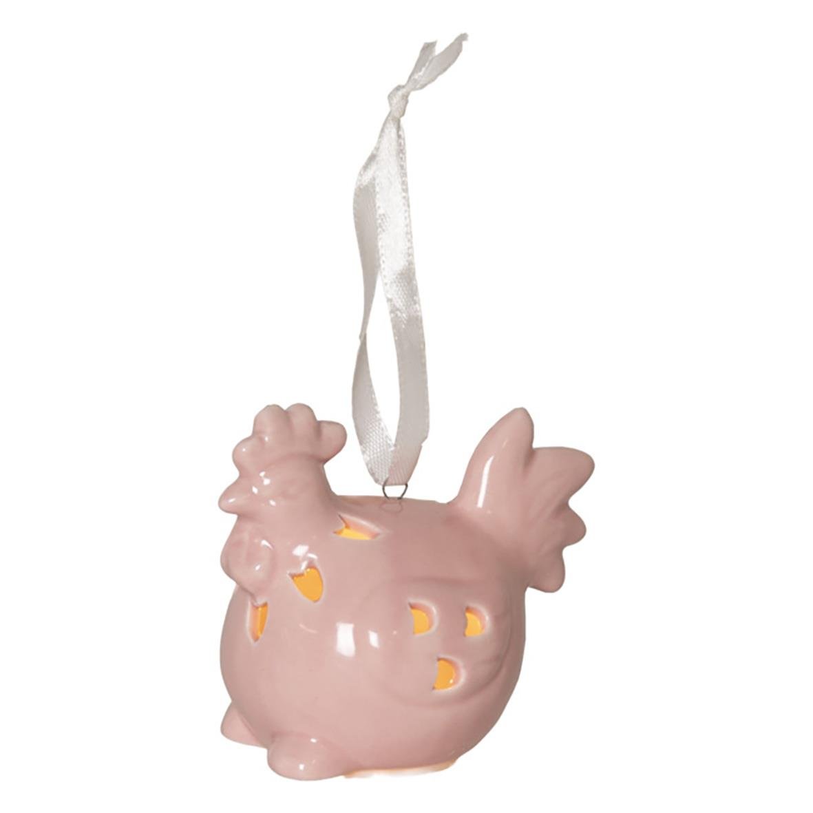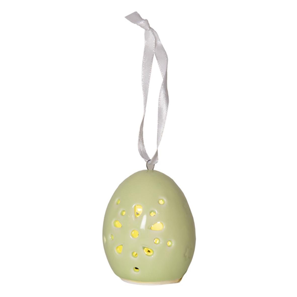 Dekorationsfigurer Esther. Dekorativ påskdekoration i set av 2 st påskkycklingar och 2 st ägg i blank porslin. Härliga pastelliga färger som lätt kombineras med andra påskdekorationer. Drivs med batteri (köps separat) och lyser i behagligt varmvitt sken.