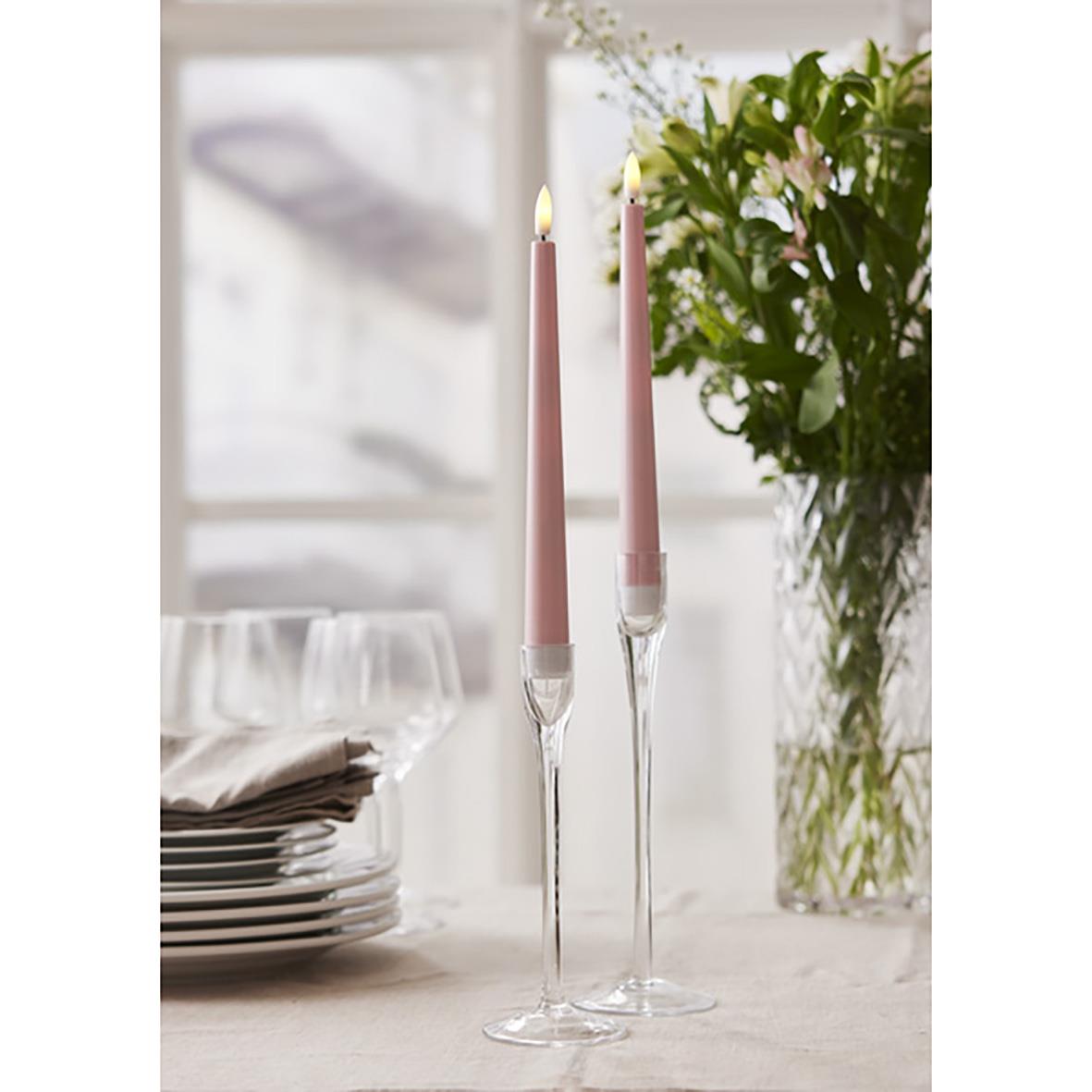 Antikljus Flamme Candy 2-pack Rosa Pastellfärg. Batteriljus Flamme Candy i en rosa pastellfärg. Gjorda i plast med en brinntid på 400h. Den lyser med varmvitt sken. Inbyggd timer 6h/18h. Drivs av 2x2 AA batterier (ingår ej). Höjd 26 cm.