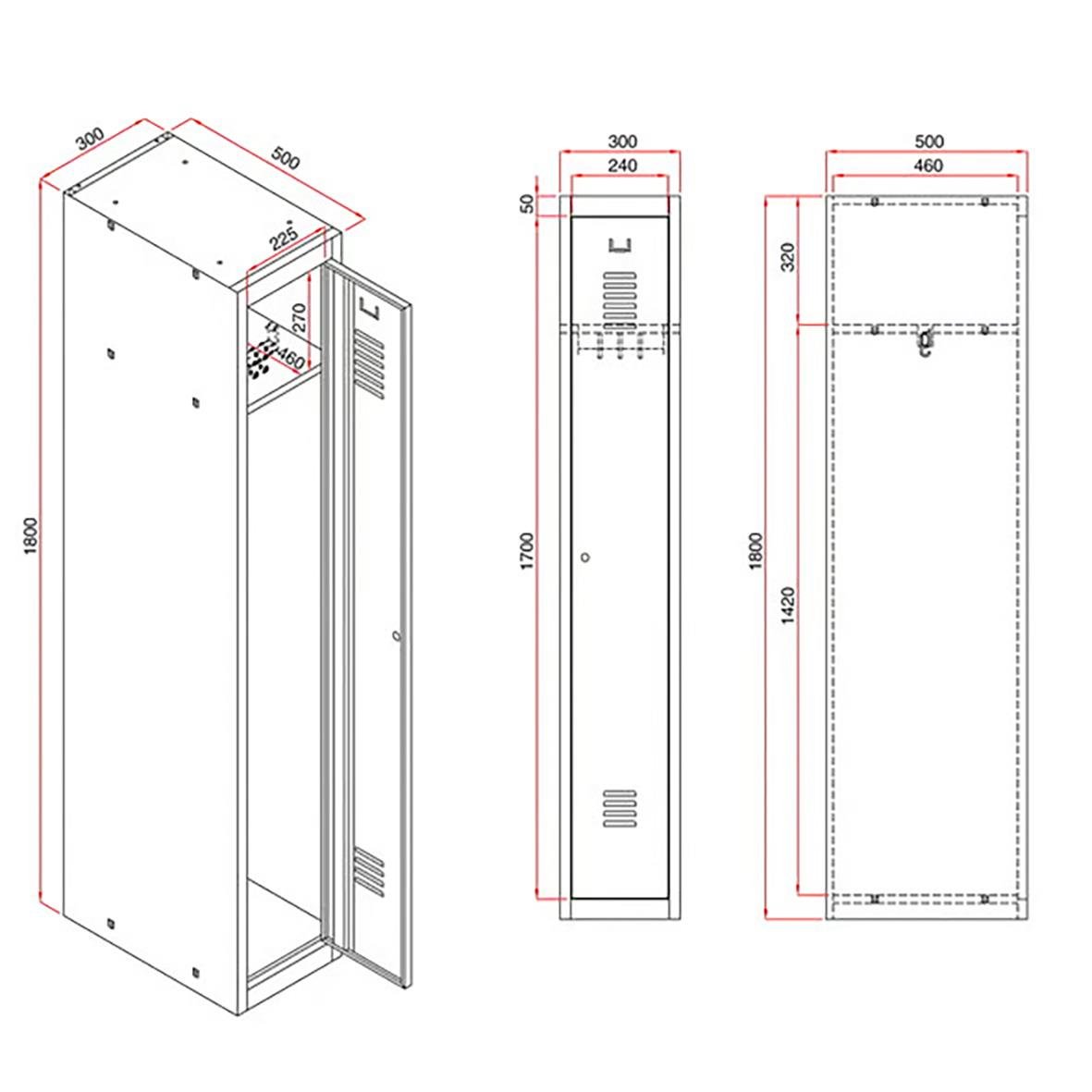 Enkelt men mycket prisvärt och praktiskt klädskåp med strukturlackerad heldörr och stomme av pulverlackerad plåt. Pulverlackeringen ger en stryktålig yta som klarar tufft slitage – perfekt för offentliga platser! Skåpet är försett med hatthylla och kläds
