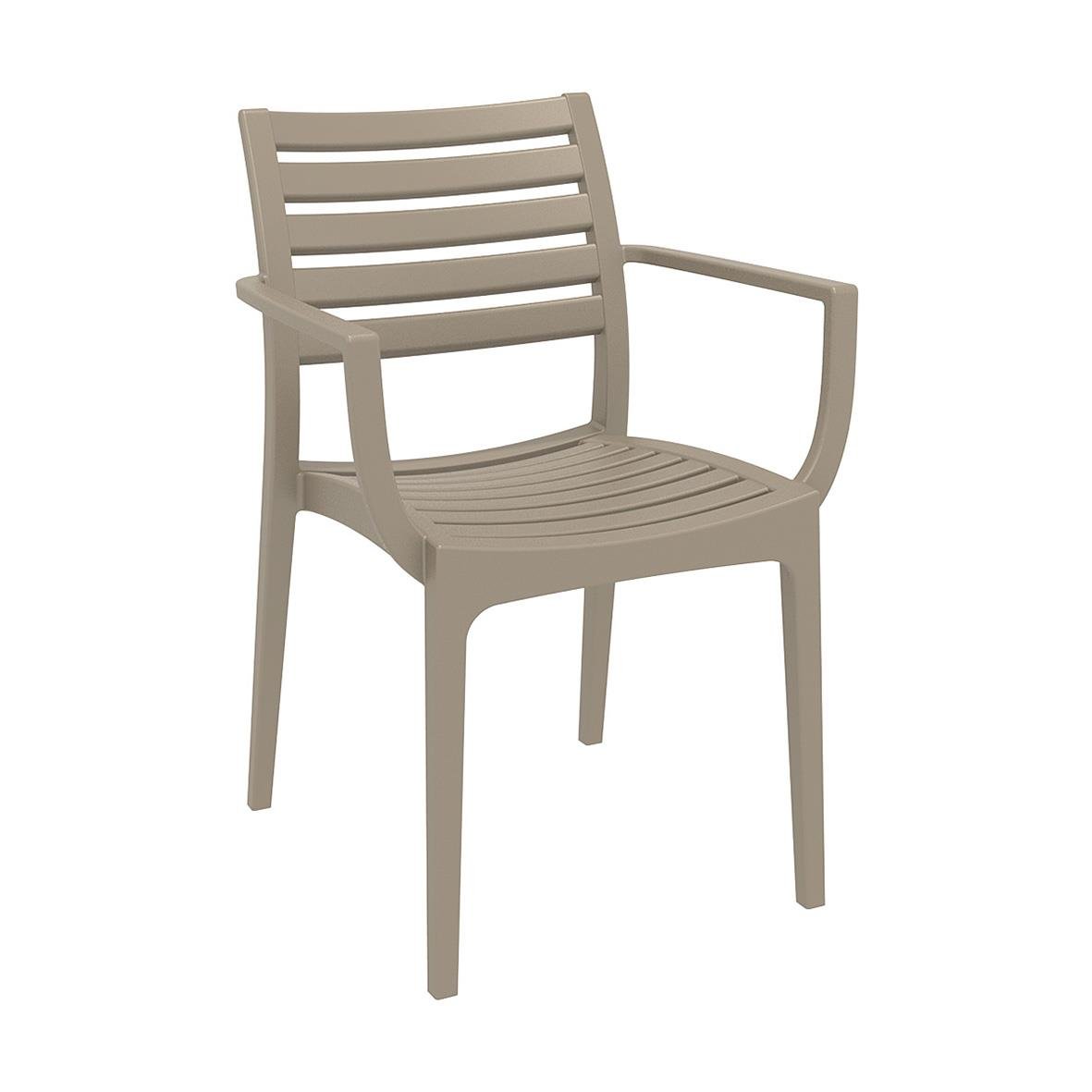 Stol Artemis Stapelbar med Armstöd Taupe kombinerar modern och klassisk design i en stapelbar stol med armstöd, framtagen för både inomhus- och utomhusbruk. Målet med stolen var att skapa en högkvalitativ och lättmöblerad stol som fungerar i de flesta mil