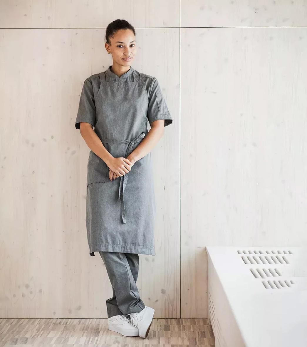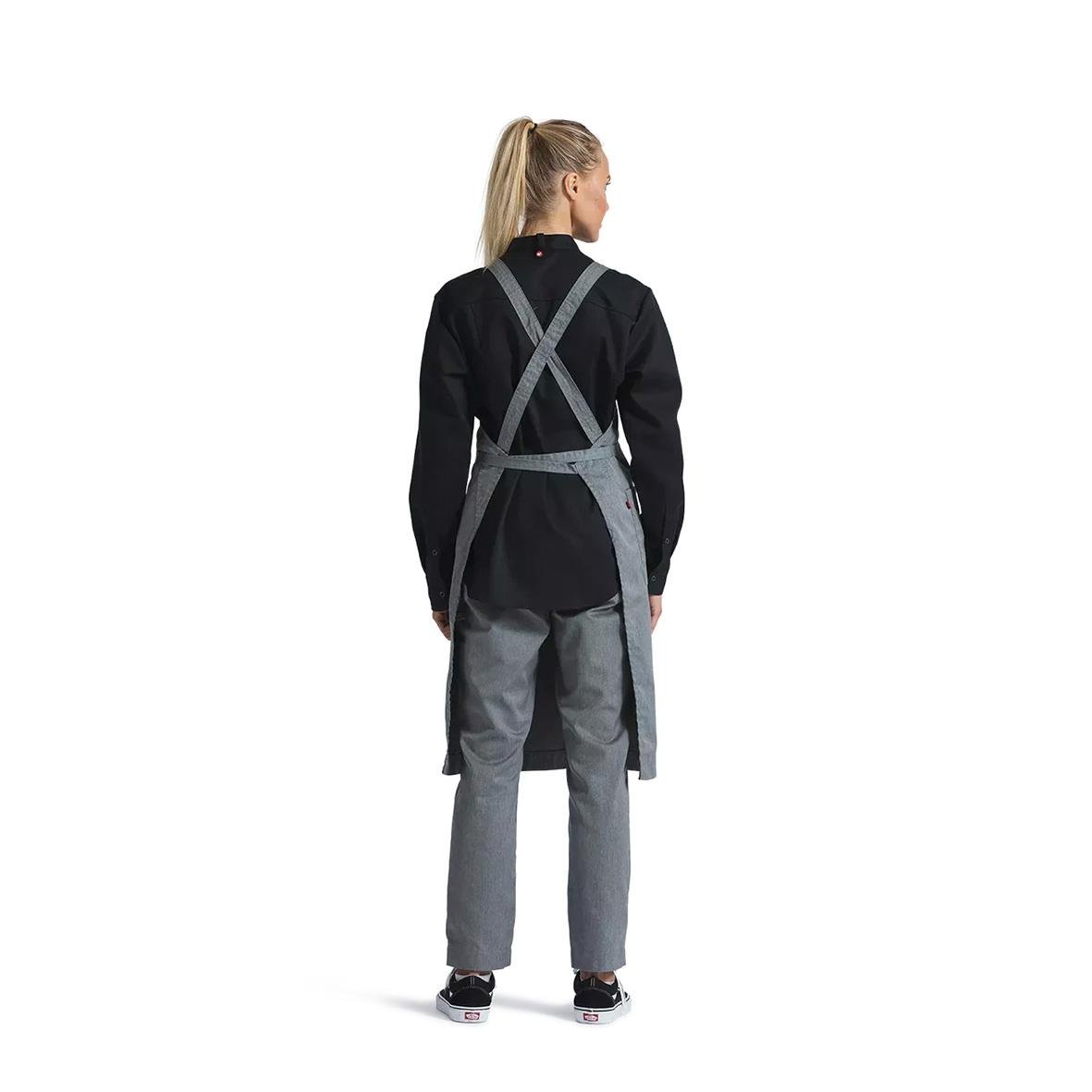 Bröstlappsförkläde Segers 4577 Support 70x100 Grå melange. Bröstlappsförkläde med ergonomi i fokus tack vare kors i ryggen med reglerbara hängslen. Produkten ingår i vår Segers Green kollektion. - Miljöbättre tyg - Sidficka med nyckelhälla - Tvättbar i