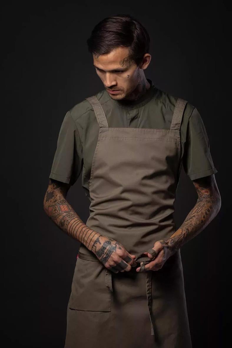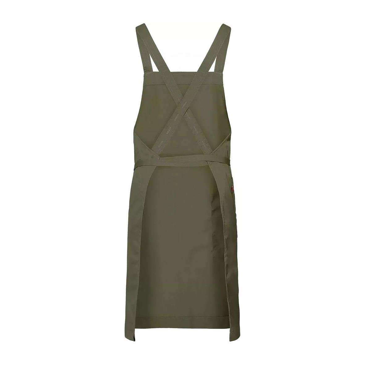 Bröstlappsförkläde Segers 4577 Supportive 70x100 Olivgrön. Bröstlappsförkläde med ergonomi i fokus tack vare kors i ryggen med reglerbara hängslen. Produkten ingår i vår Segers Green kollektion. - Miljöbättre tyg - Sidficka med nyckelhälla - Tvättbar i