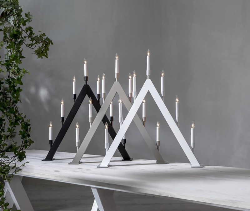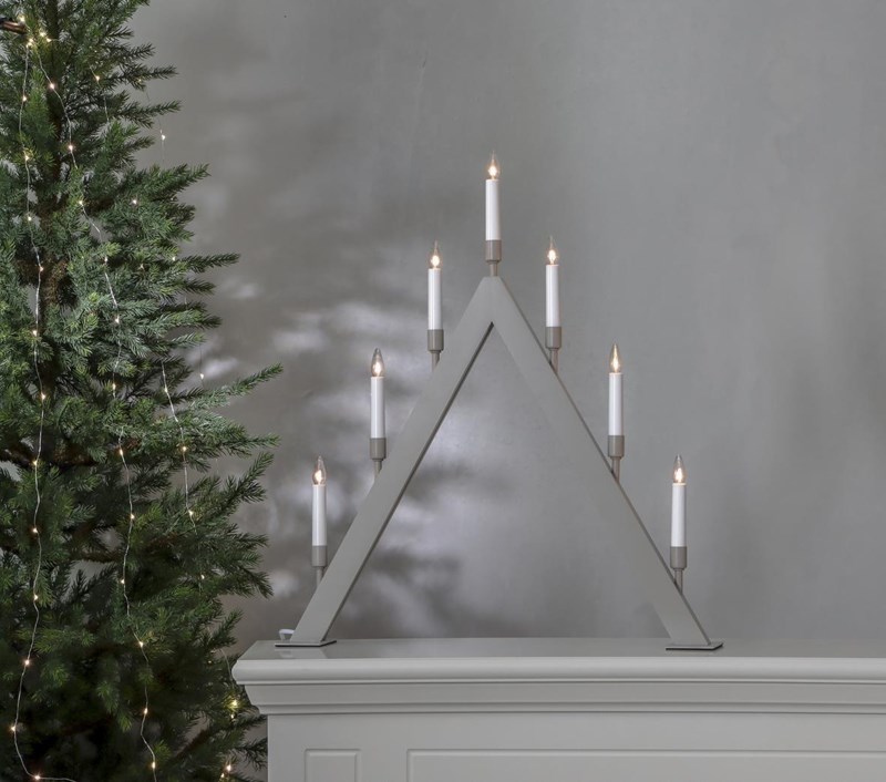 En väldigt fin och stämningsfull adventsljusstake i A-form. Vitmålad träbas med upphöjda ljuskoppar, ger ett elegant och enkelt uttryck till både hemmet och den offentliga miljön. Sprider ett behagligt ljus med sin 7 ljuskällor. Placera i ett fönster elle