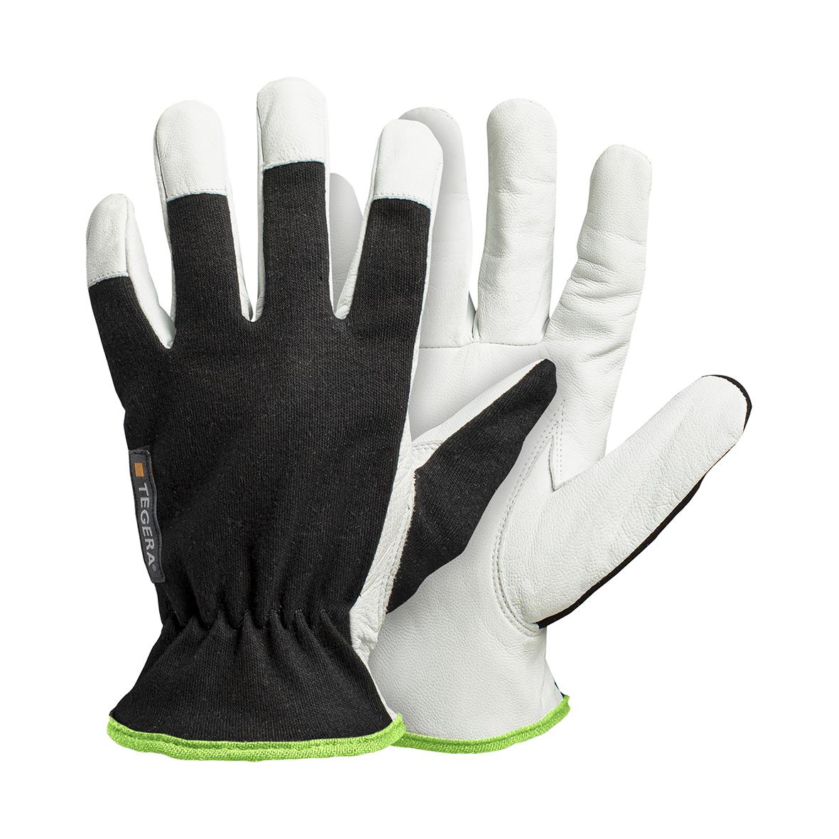 Monteringshandske Tegera 511 Läder 8. Denna prisvärda bashandske i getskinn och bomull/polyester har förstärkta fingertoppar och lämpar sig för många typer av monteringsarbeten. Den elastiska mudden håller handsken på plats och gör den lätt att ta på och