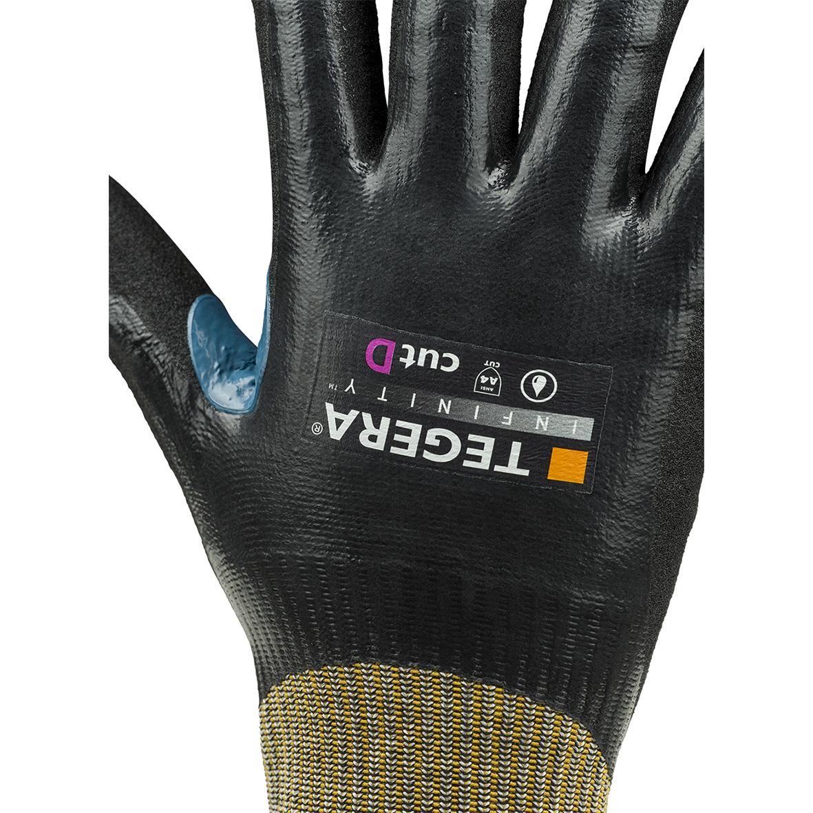 Skärskyddshandske Tegera 8812 Infinity 11. Smidig skärskyddhandske (D) lämplig för monteringsarbete. Ultralätt tack vare 15 gg stickning och CRF® skärskyddsteknologi. Heldoppad med mycket mjukt nitrilskum och belagd handflata för bästa grepp i feta och o