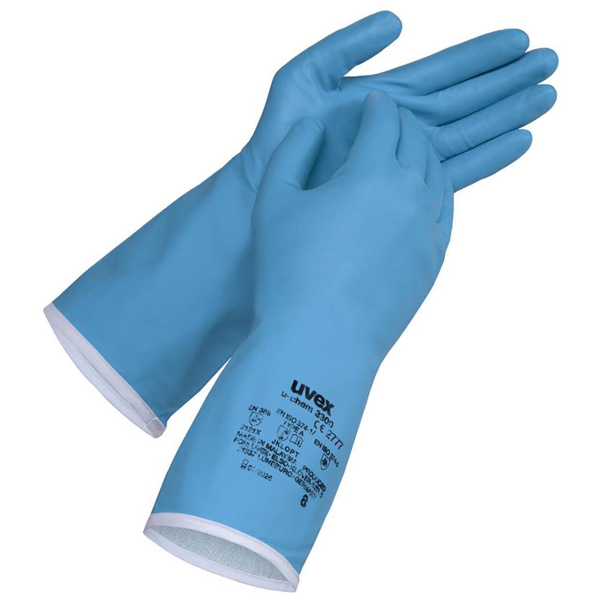 Kemskyddshandske Uvex U-Chem 3300 Blå 9. Uvex U-chem 3300 är en mycket känslig kemikalieskyddshandske. Bambufibern som används i denna modell är särskilt snäll mot huden och är bekväm att bära även under långa perioder, vilket gör den idealisk för en m