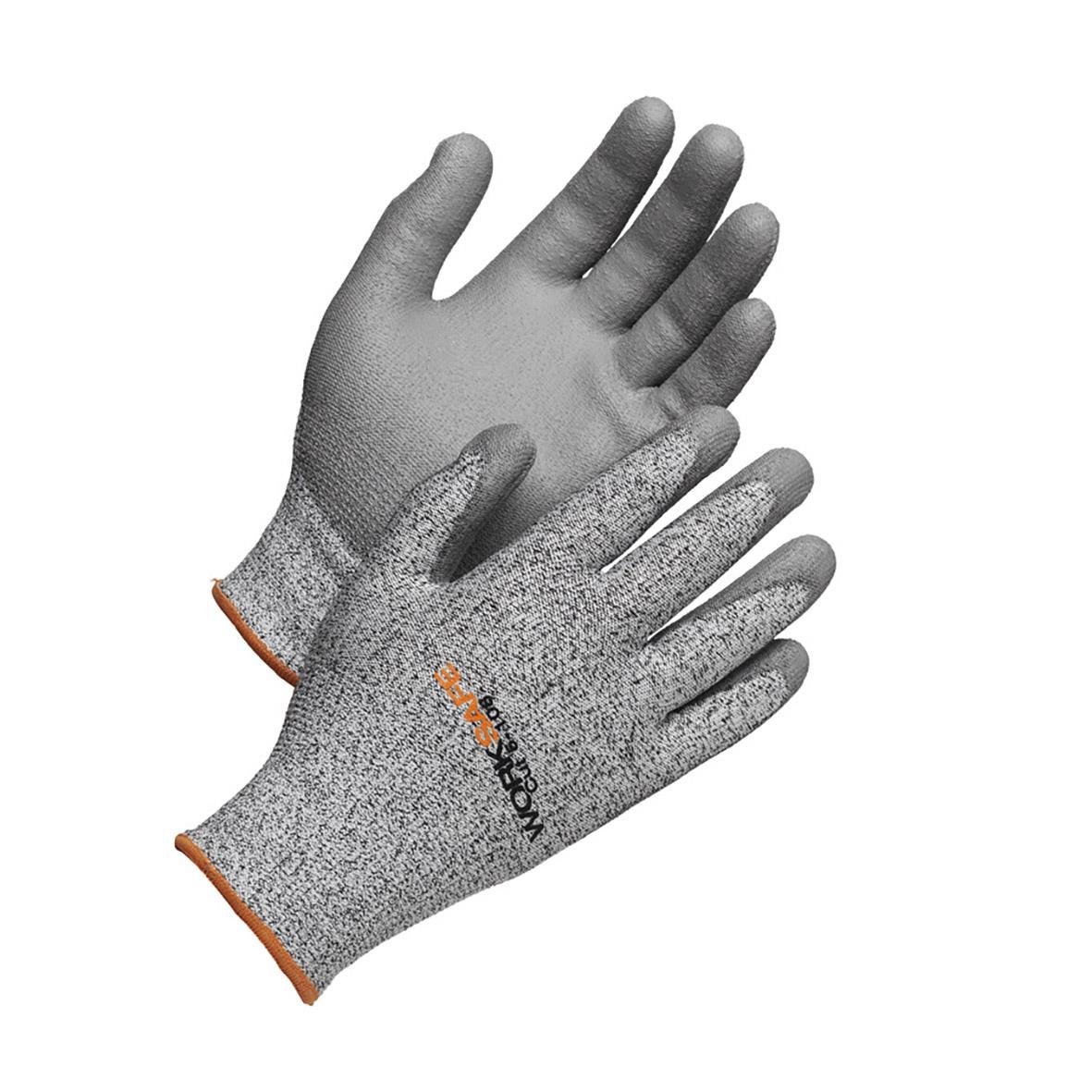 Skärskyddshandske Worksafe Cut 5-108 Nivå C Stl 10. Bekväm PU-doppad skärskyddshandske med skärskyddsnivå C. Passar bra till arbete där skärskador kan förekomma. Ventilerande ovanhand och en stickad sömlös liner ger en skön komfort under hela arbetspass