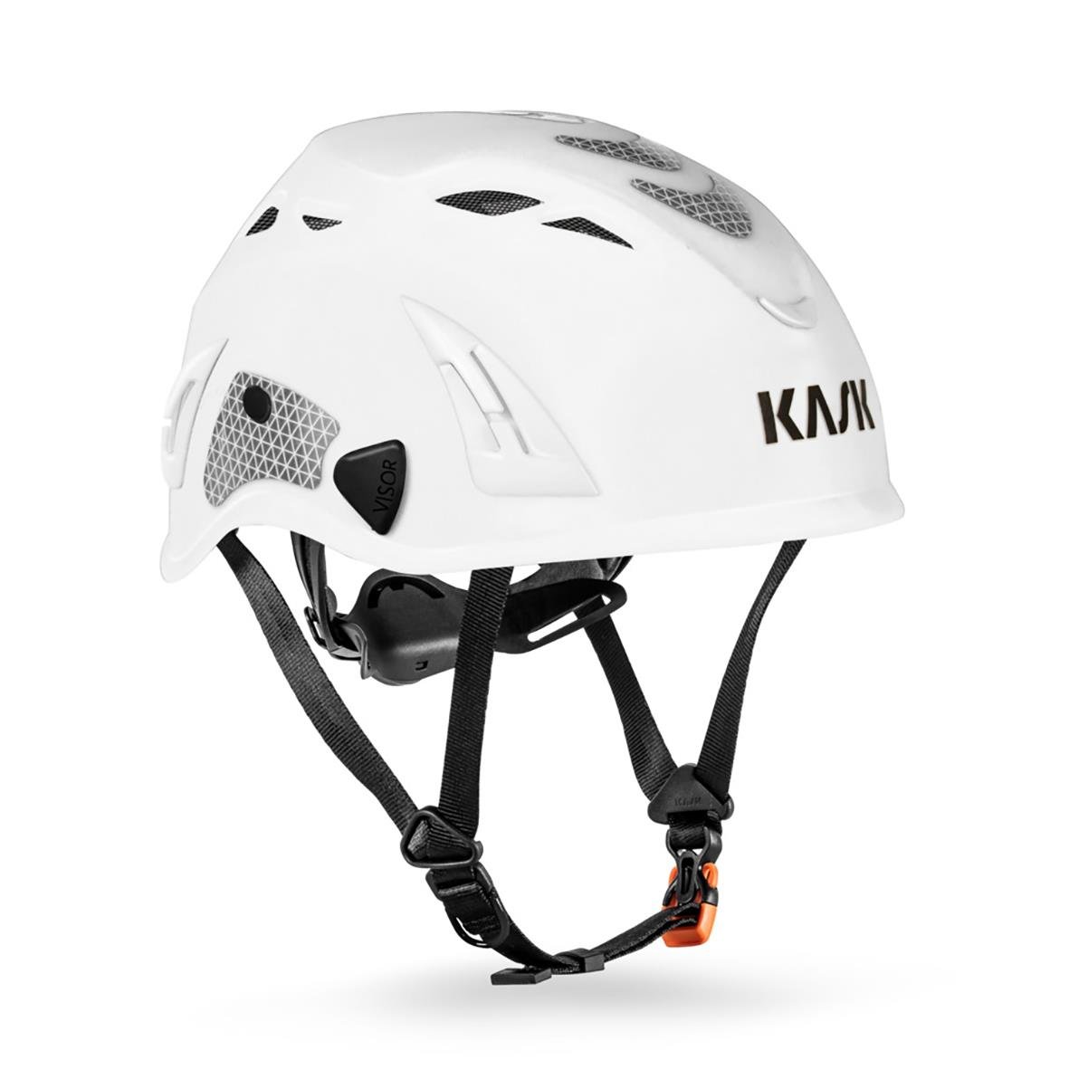 Skyddshjälm Kask Superplasma AQ HiViz Orange. Ventilerad hjälm med reflexer. Yttre skal i HD Polypropylen och inre skal i HD Polysteren. Uppdaterat justeringssystem, Ergo Fit System, ger bättre passform, komfort och bättre kompabilitet med tillbehör. För