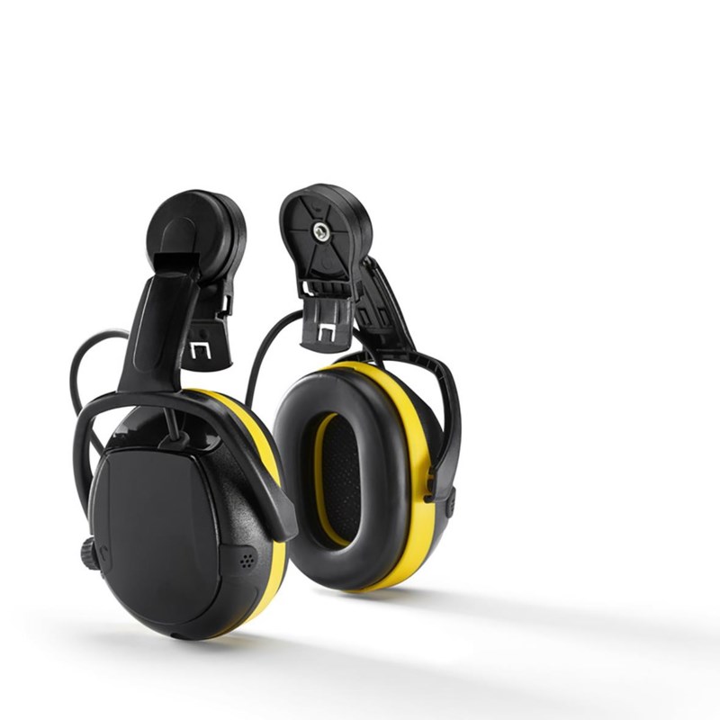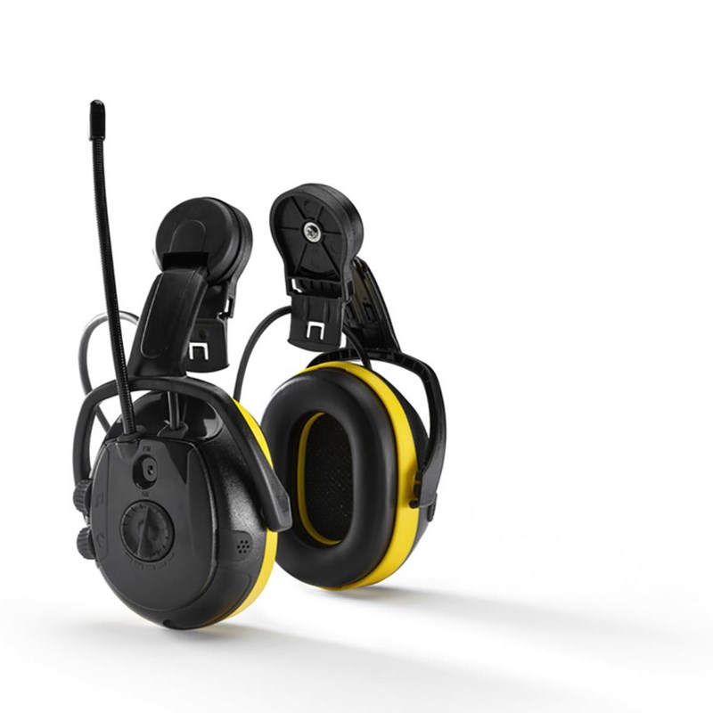 Hjälmkåpa med behagligt mjuka hygienkuddar för komfortabel användning under hela arbetspasset. Nu kan du kombinera en säker arbetsplats tack vare medhörning och lyssna på AM/FM-radio. Andra ljudkällor
