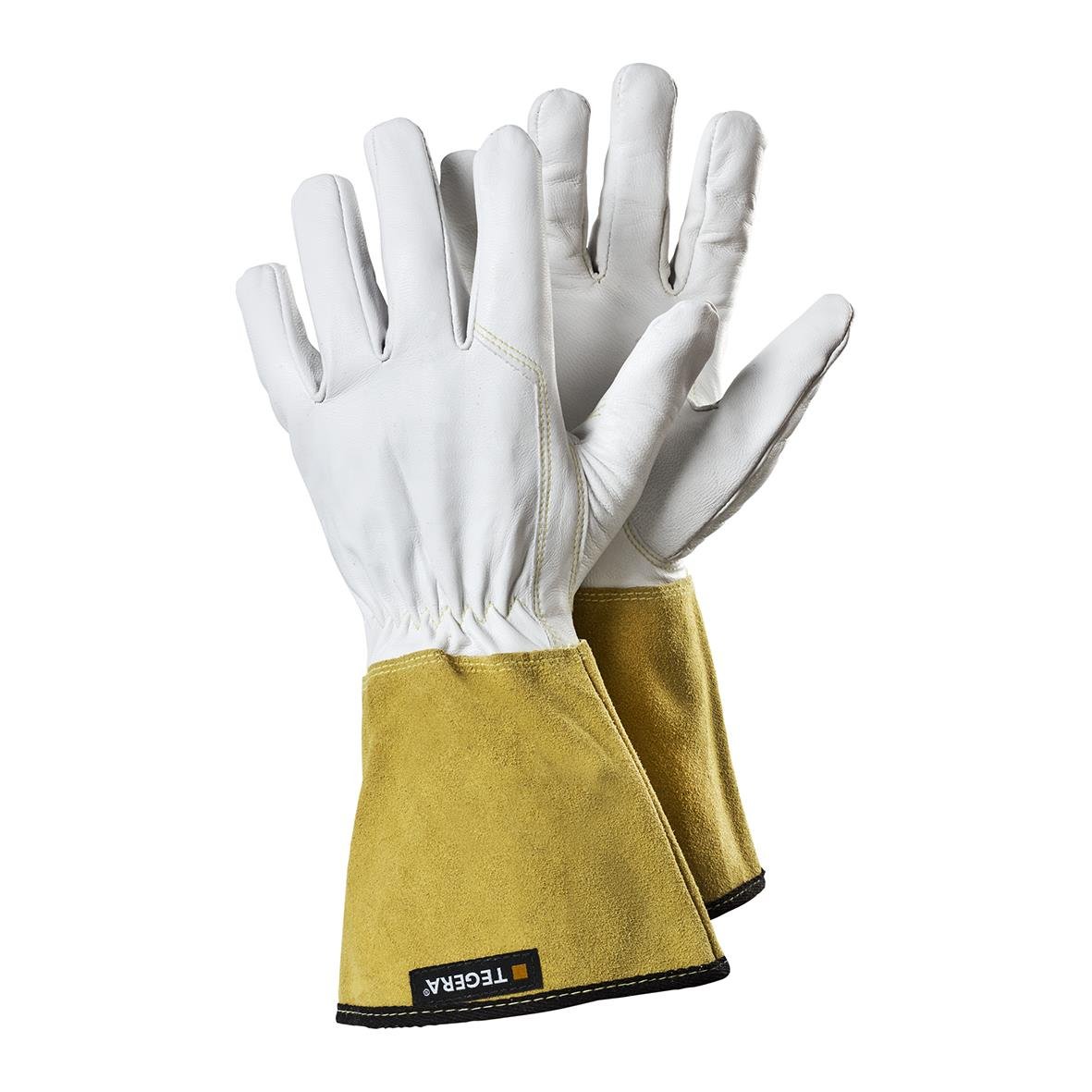 Läderhandske Tegera 126A 11. Högkvalitativ läderhandske med utmärkt komfort, flexibilitet och sömmar i Kevlar®. Handsken är industristandard för TIG-svetsning. Lång manschett ger extra skydd mot stänk. Elastisk handled för bättre passform, ofodrad för ex