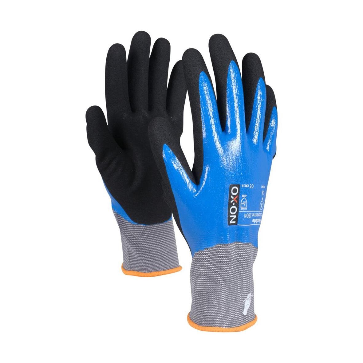 Allroundhandske OX-ON 93140 Comfort 10 OX-ON NBR Comfort 8302 är en ytterst slitstark handske för dig som arbetar i våta miljöer, t.ex. med murning, avlopp, bygg, renovering, anläggning, tanktransport eller industri. Handsken är halvdoppad i kraftig blå