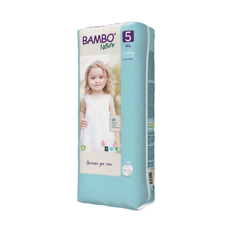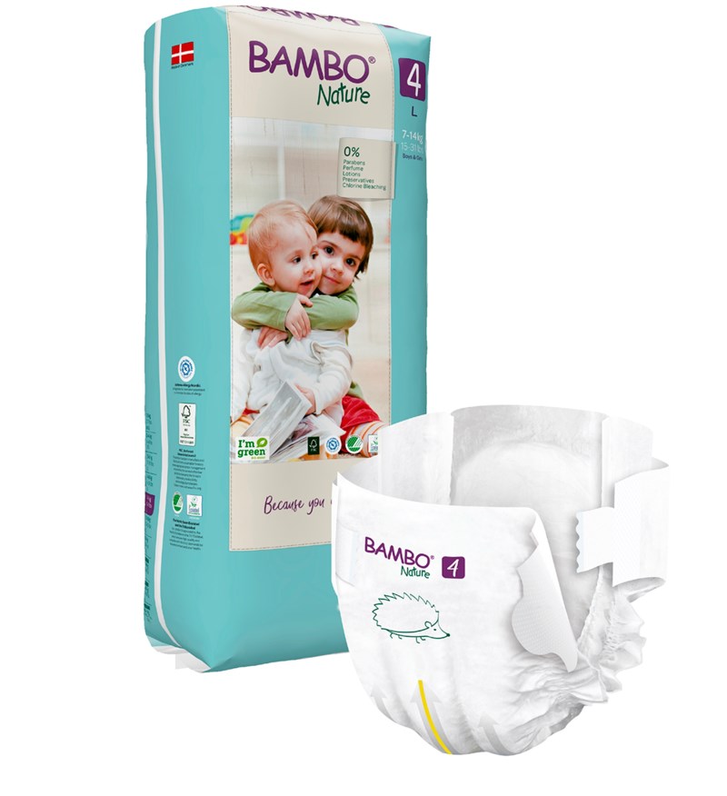 Bambo Nature är en allt-i-ett blöja, framställd utan optiska vitmedel, parfym eller hudlotion. Blöjan har ett andningsbart spärrskikt, klätt med ett textilliknande material för att förhindra hudirritationer. Stående läckagebarriärer minskar risken för sid