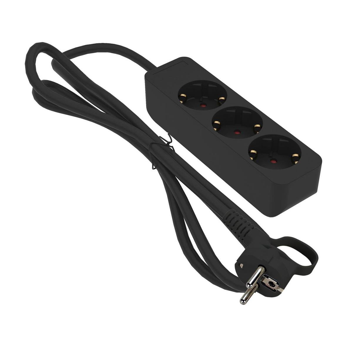 Grenuttag 3-vägs Jordad Svart 1 m är utrustat med snedställda uttag och en vinklad stickpropp som gör att det tar minimalt med plats från vägguttaget – perfekt för användning bakom möbler. Stickproppen är dessutom försedd med en flexibel och greppvänlig ö