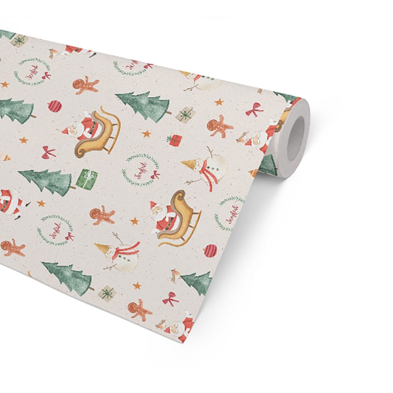Julpapper Joyful 57cm x 154 meter. Obestruket papper, 80g FSC-märkt